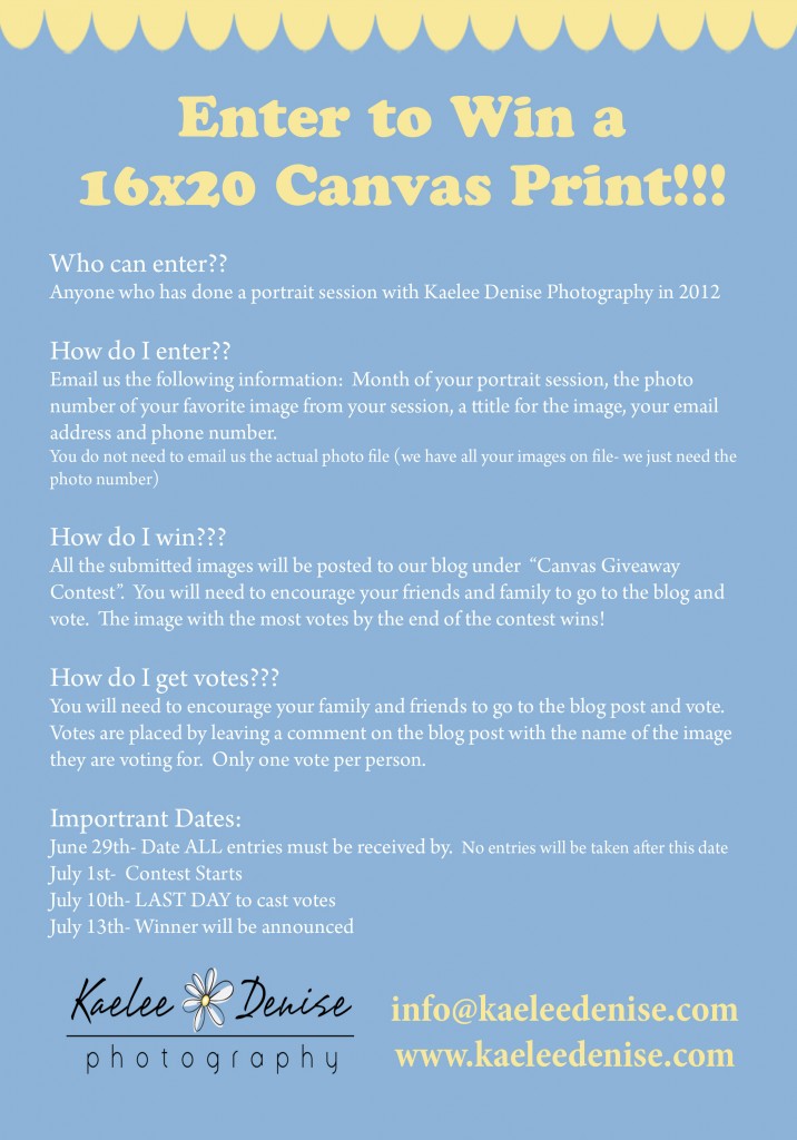 Entires can be from any session with Kaelee Denise Photography in 2012 (newborn, family, wedding, etc)